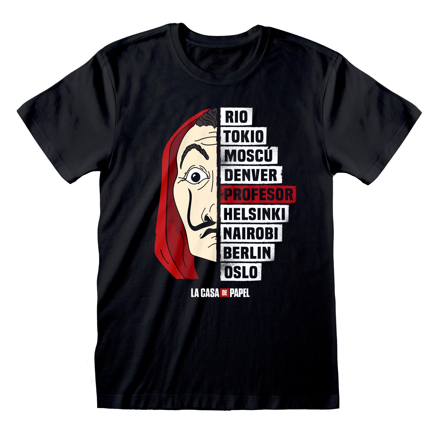 Officially Licensed La Casa De Papel merchandise. This T-shirt features an iconic design from the franchise, printed on a 100% cotton black unisex T-shirt. 30% degrees wash