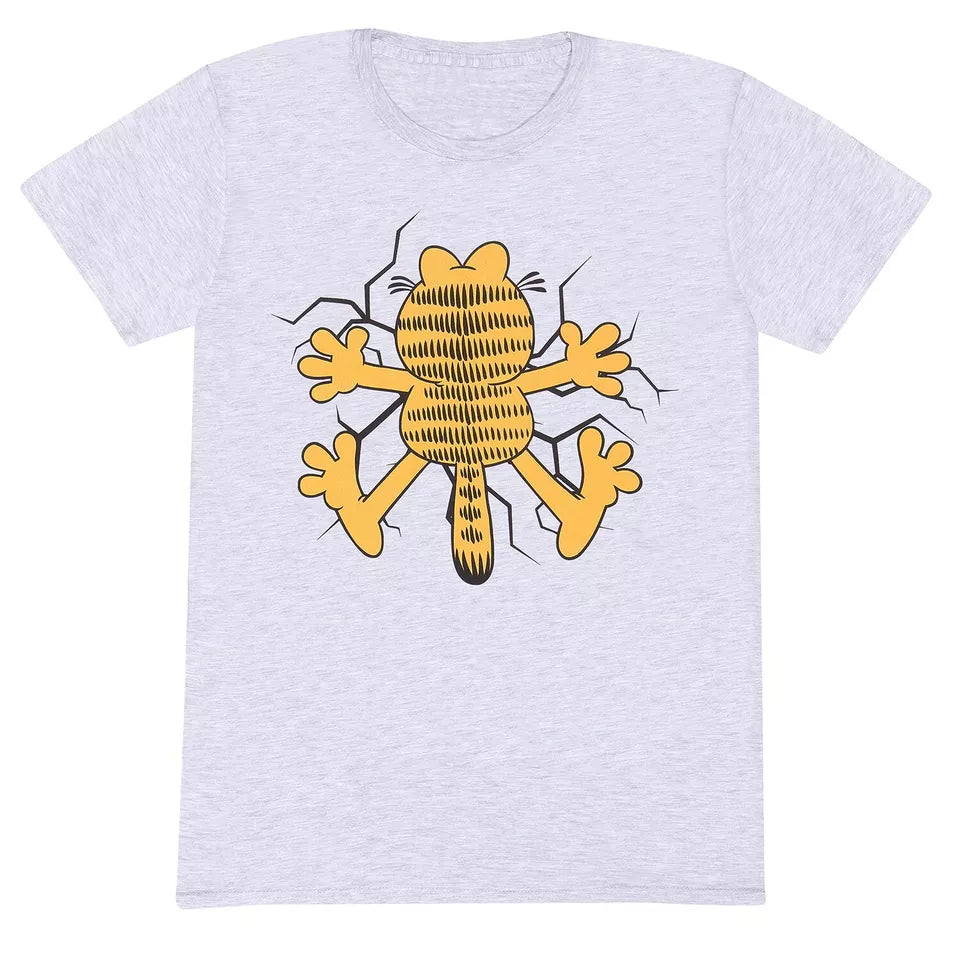 Official Garfield Wall Smash Unisex Heather Grey T-Shirt Funny Cat Graphic Tee