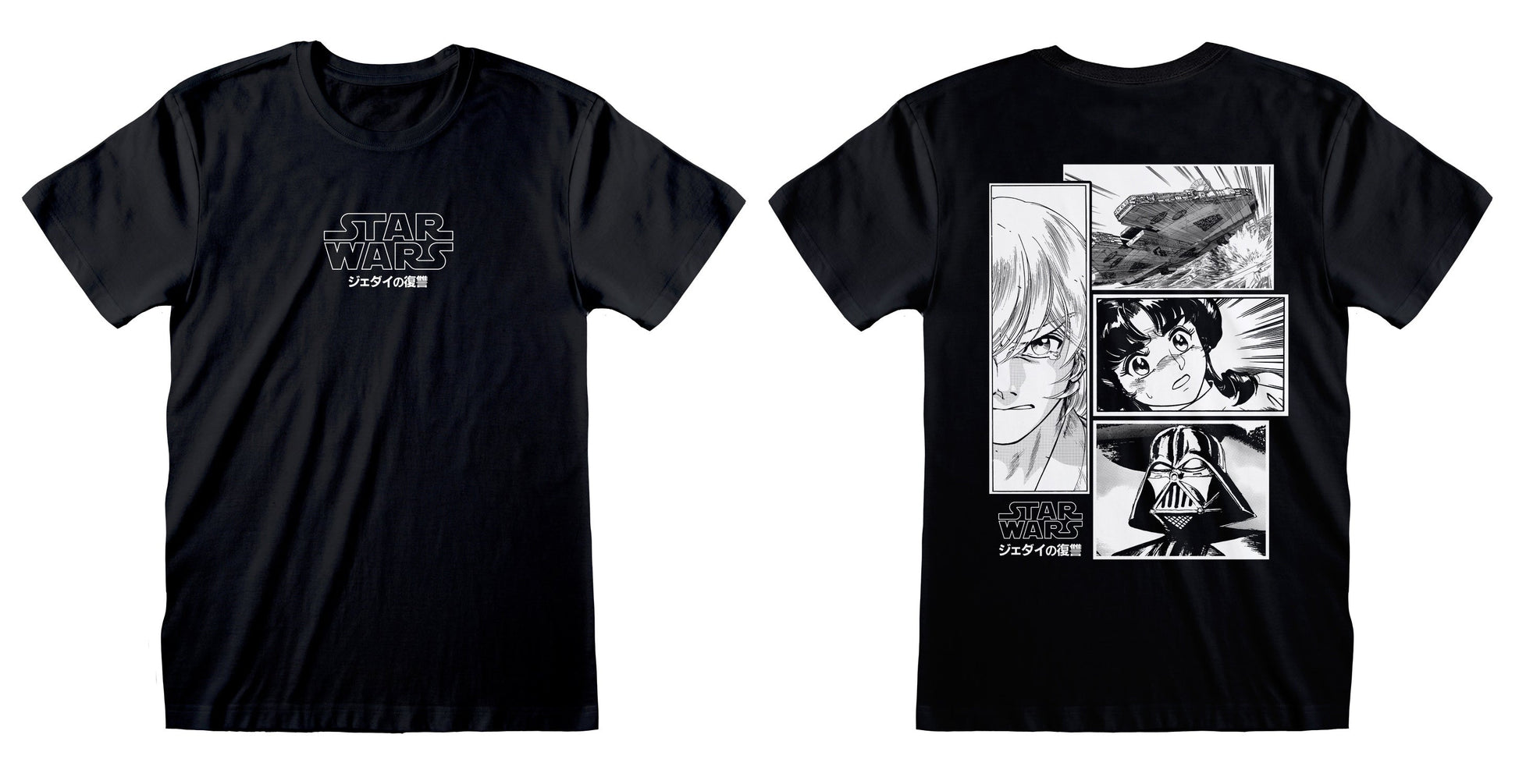 Official Star Wars Manga Logo Black T-Shirt Front and Back Print Graphic Tee